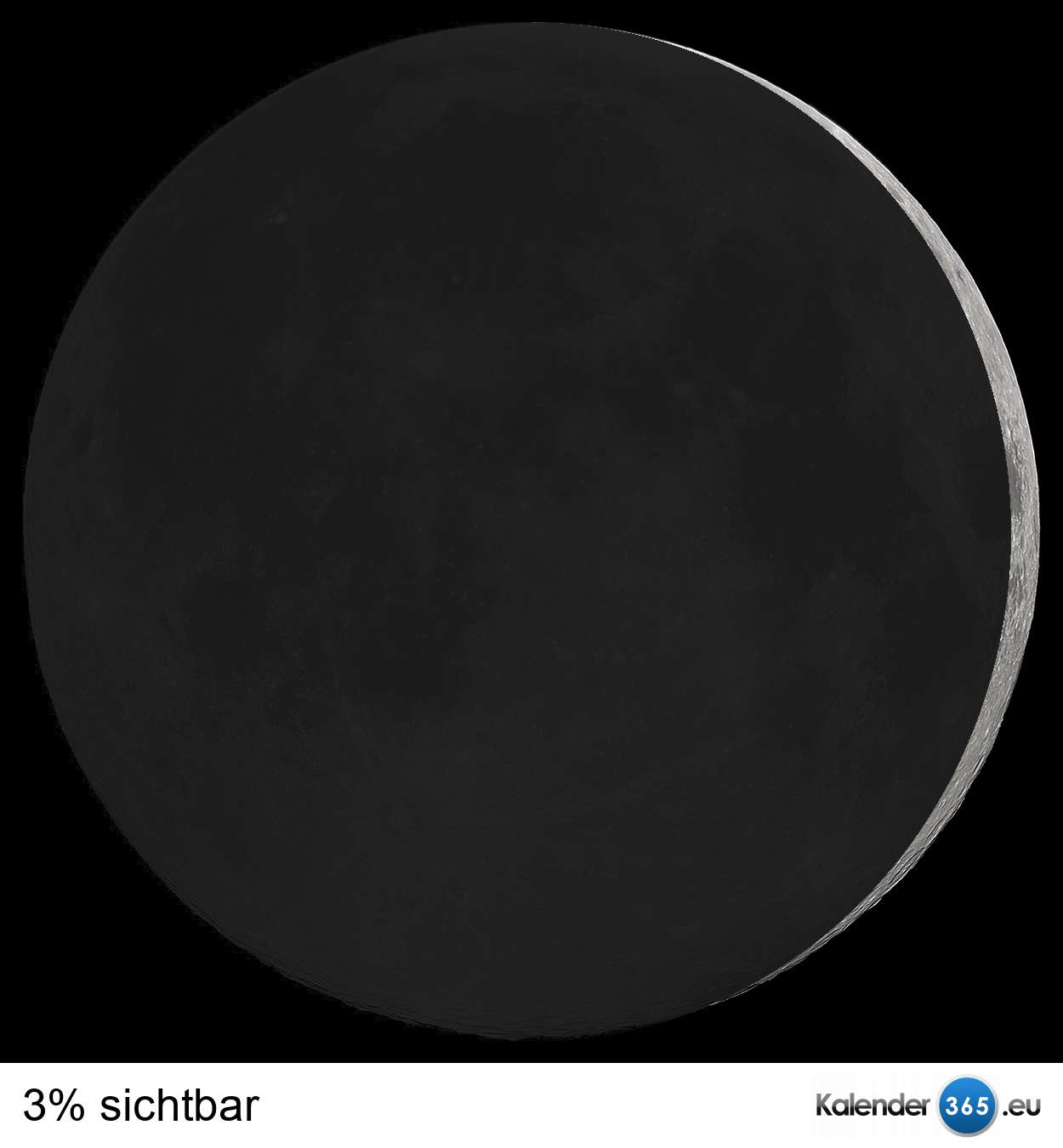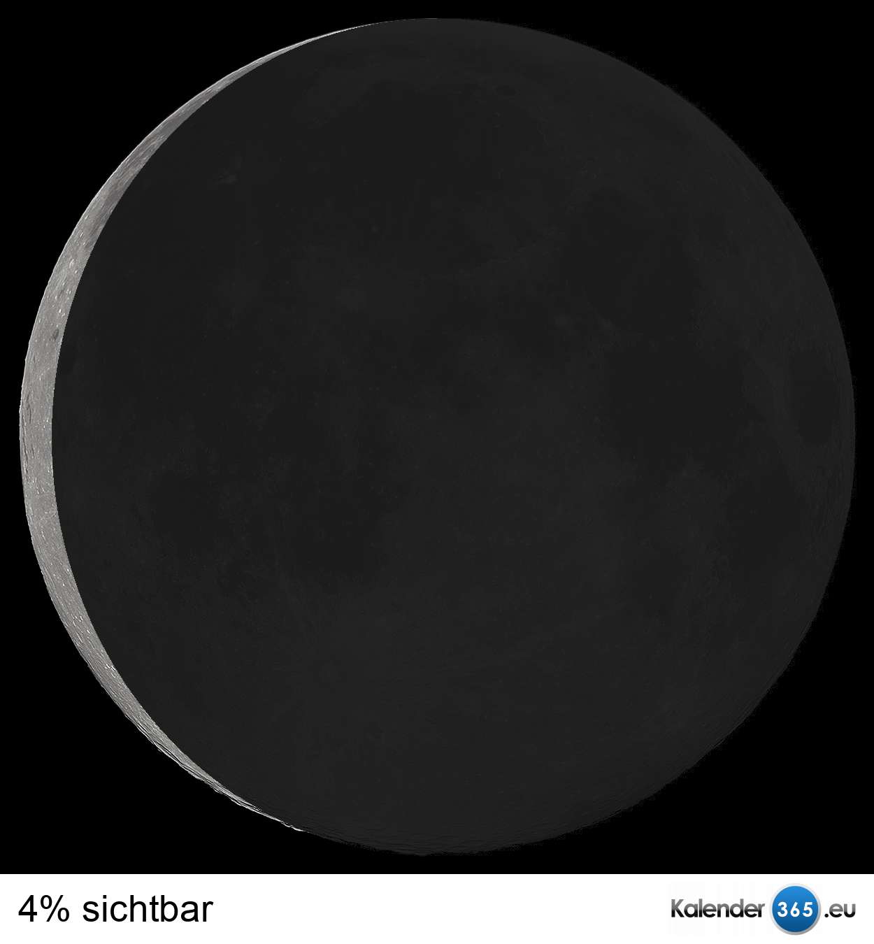 Sieh hier den aktuellen Mondstand. Die Sichtbarkeit des Mondes ist in Prozent angegeben.